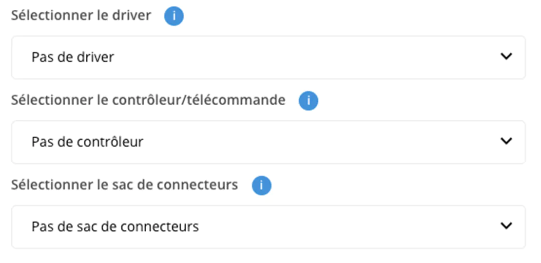 Oui, dans notre boutique en ligne, vous trouverez des kits complets de rubans LED, vous offrant tout ce dont vous avez besoin. Pour les solutions Noxion professionnelles, nous mettons à votre disposition un configurateur pratique sur la page du produit. Vous pouvez y choisir le contrôleur/la télécommande que vous souhaitez ajouter. Il en va de même pour le driver, dont vous trouverez plus d'informations dans cet article de blog.