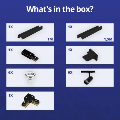 | Nom du fabricant | Complete L shaped 1-Phase Track Set Black incl. 6x Spot fixture + GU10 2700K 3W Dim - 1 x 1,5 meter | |