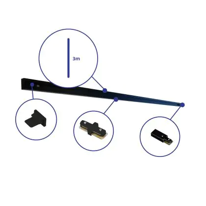 Caractéristiques du Bright Choice Rail Set Rail Monophasé 3 Mètre Noir | incl. Embout, Connecteur d’Alimentation et L-Connecteur