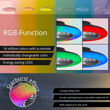 Caractéristiques du Brilliant Salerno Ventilateur Plastique Métal Noir 36W 4700lm - 830-865 CCT+RGB | 485mm - Télécommande Dimmable