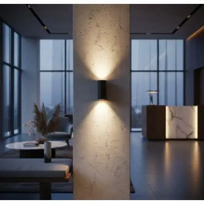 Direction de la lumière : Émission lumineuse vers le haut et vers le bas, parfaite pour mettre en valeur les textures murales et créer du relief.