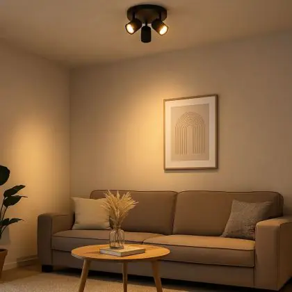 Ambiance salon : Orientez les spots vers votre coin détente ou une œuvre d’art pour une atmosphère chaleureuse et accueillante.