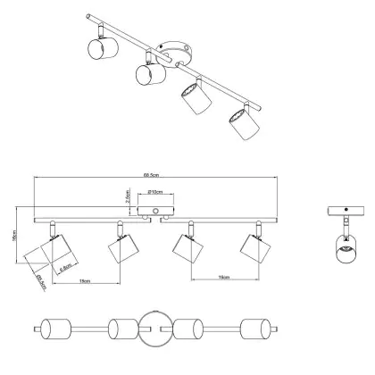 Compatibilité : Fonctionne avec 4 ampoules GU10 (non incluses), pour un éclairage personnalisable selon vos besoins.
