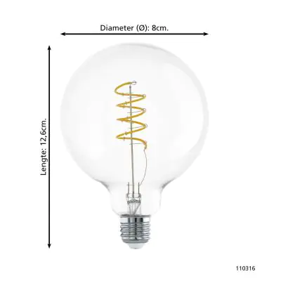 Description Eglo LED E27 Globe Claire Filament 7.3W 806lm - 827 Blanc Très Chaud | Équivalent 60W
