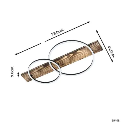 Caractéristiques du Eglo Plafonnier Boyal Bois Noir, Rouille 12W 1700lm - 830 Blanc Chaud