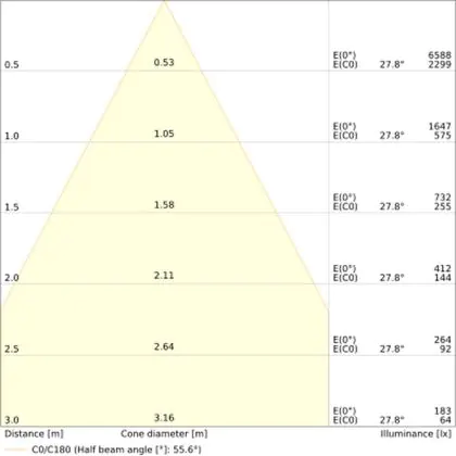 Ce downlight a un angle de 55°degrés, il peut donc être utilisé dans de nombreux environnements de travail et/ou dans les maisons.
