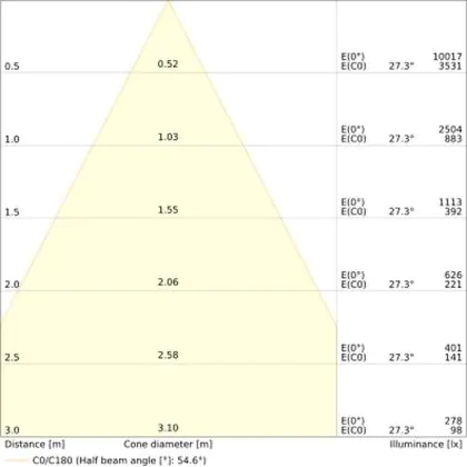 Ce downlight a un angle de 55°degrés, il peut donc être utilisé dans de nombreux environnements de travail et/ou dans les maisons.
