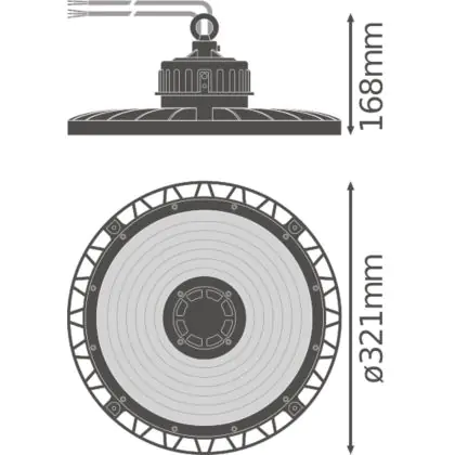 Cet high bay a une IP de IP65 – Résistant à la poussière et à l'eau (jets d'eau) et un IK de IK08 - 5 Joule.