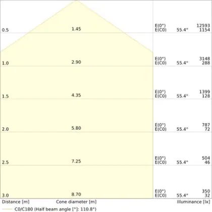 Cette indication vous permet de savoir quelle source de lumière conventionnelle est remplacée par le produit LED, grâce à la puissance en watts
