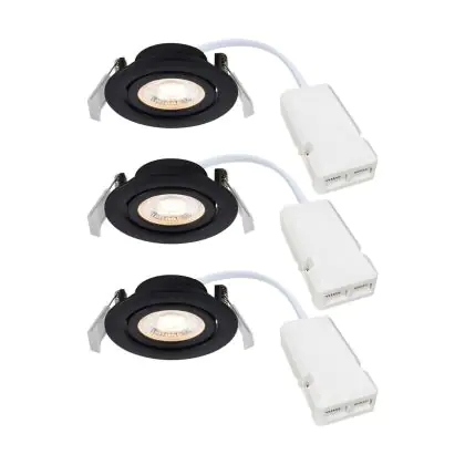 Description Lot 3x Nordlux Downlight Monolo Noir 4.8W 450lm 36D - 830 Blanc Chaud | 82mm - IP20 - 3 Niveaux De Gradation Dimmable