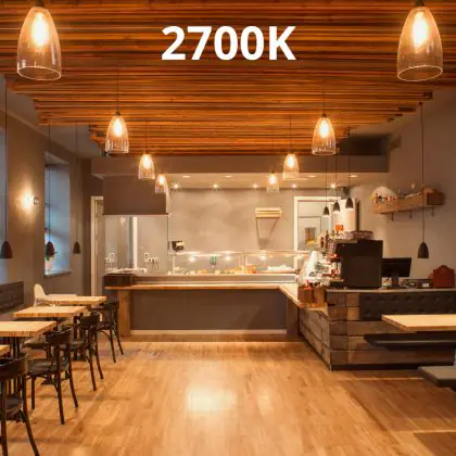 Choisissez ensuite la température de couleur extra blanc chaud : (1800 - 2700 Kelvin). Par ailleurs, le blanc chaud (3000 K) est plus adapté aux zones générales et la couleur de lumière plus naturelle qu'est le blanc froid (4000 K) est principalement utilisée pour l'éclairage fonctionnel.