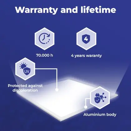 L'achat de ce panneau LED de 120x60cm est un excellent choix pour de multiples raisons. Avec une durée de vie moyenne de 70000 heures, vous êtes assuré d'avoir un produit durable qui fonctionne de manière optimale pendant de nombreuses années. De plus, vous faites votre part pour un environnement plus propre, car l'éclairage LED réduit les émissions de C02 et ne contient pas de substances toxiques comme le mercure.
