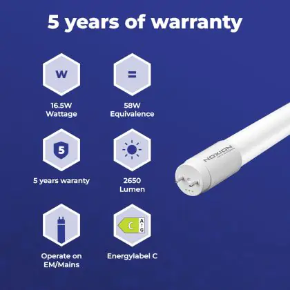 | Nom du fabricant | Noxion Avant LEDtube T8 Extreme HO (EM/Direct) 1500mm 16.5W/830 (58W eqv.) with Starter | |