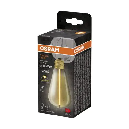 Description Osram Vintage 1906 LED E27 Special Filament Claire Edison 2.2W 120lm - 827 Blanc Très Chaud | Équivalent 15W