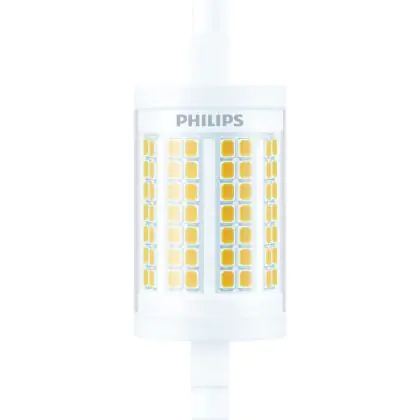 Philips LED Linear R7s CorePro 78mm 11.5W 1521lm - 830 Blanc Chaud |Équivalent 100W est le remplacement parfait pour vos lampes halogènes traditionnelles R7s de 100W avec un code couleur 830 Blanc Chaud. Les ampoules LED ne produisent pas de chaleur et n’émettent pas de radiation UV. Passez à la LED vous offrira de nombreux avantages !