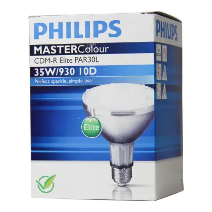 Les ampoules Philips CDM-R Elite sont des lampes à décharge compactes équipées de réflecteurs offrant un très bon maintien du flux de la première à la dernière utilisation. Les Philips CDM-R Elite 35W 930 PAR30L 10D offrent une lumière d’une excellente qualité qui met en valeur les objets éclairés.