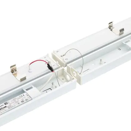 Cette réglette LED d'une longueur de 1450 mm est l'alternative durable et économe en énergie à un luminaire fluorescent de même format et avec deux tubes fluorescents de 2x58 Watt.