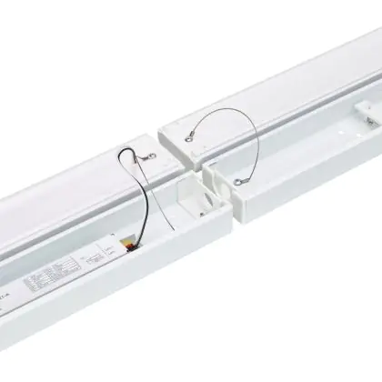 Cette réglette LED d'une longueur de 1450 mm est l'alternative durable et économe en énergie à un luminaire fluorescent de même format et avec deux tubes fluorescents de 2x58 Watt.
