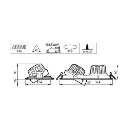 Caractéristiques du Philips Spot LED Greenspace Accent Gridlight Aluminium Blanc 60W 3900lm 36D - 930 Blanc Chaud | 154mm - IP20 - Meilleur Rendu Des Couleurs - Dali Dimmable