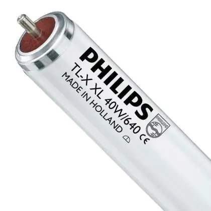 Philips TL-X XL sont des lampes à décharge basse pression de mercure couvertes d’une enveloppe tubulaire de 38mm. Ces lampes sont équipées d’une douille spéciale qui élimine tous les effets de décharge disruptive pendant l’amorçage. Philips TL-X XL 40W 33-640 mesurent 118 cm et ont un culot du type Fa6.