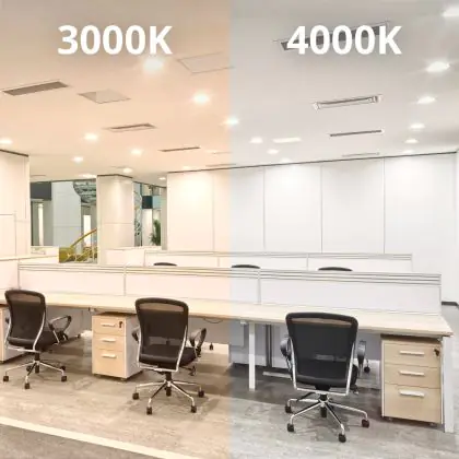 De lichtkleur wordt aangeduid in Kelvin waardes. Een Kelvin waarde van 3000K staat voor warm wit licht. Een warm witte lichtkleur is toepasbaar in bijvoorbeeld, hallen, gangen, kledingwinkels, meubelzaken en algemene ruimtes. Het warme licht dat de downlight uitstraalt creëert een aangename sfeer voor bezoekers.