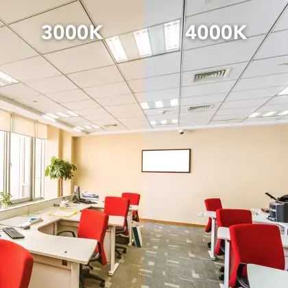 De kleurtemperatuur van 4000 Kelvin staat voor koel wit licht. Dit licht wordt voornamelijk is kantoorruimten, het houdt werknemers namelijk gefocust en alert. 4000 Kelvin geeft in de praktijk een natuurlijke tint licht af.