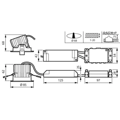 Beschrijving Philips LED Spot RS156B CoreLine Aluminium Wit 12.3W 1300lm 36D - 830 Warm Wit | 85mm - Zaagmaat 68mm - IP20/44 - Dali Dimbaar